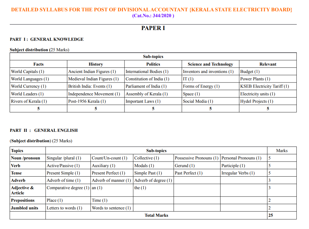 Click Here Kerala Psc Divisional Accountant Syllabus